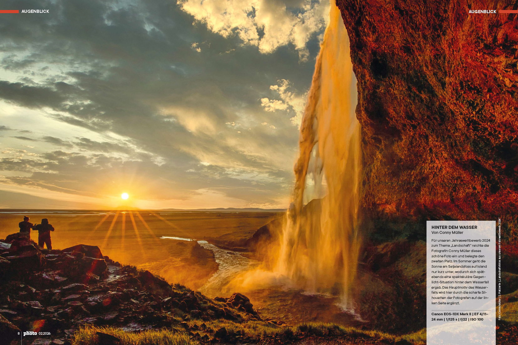 Die renommierte Fachzeitschrift DIGITALPHOTO veröffentlicht doppelseitig das Foto „Hinter dem Wasser“ vom Seljalandsfoss in Island.